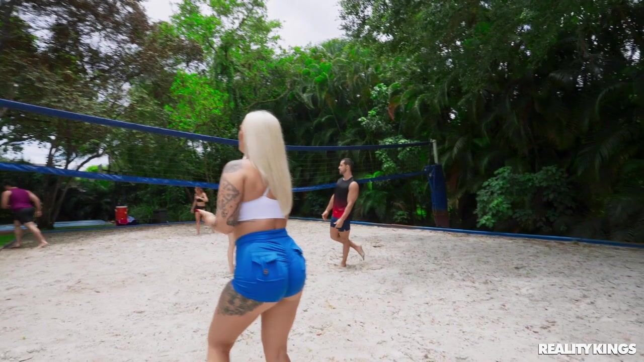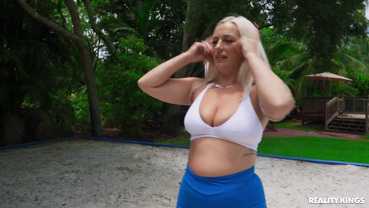Description: Elana Bunnz can't keep her eye on the volleyball when her teammate Duncan Saint's dick is bouncing in his shorts. She gets so turned on, she takes a time-out to sneakily rub one out. When Duncan catches her rubbing her clit with her big tits out, scoring with the blonde is the only thing on his mind. They sneak off to find a quieter spot where Elana sucks his cock and he pounds her pussy. Elana wraps her big tits around his dick till he cums in her mouth for her to play with!