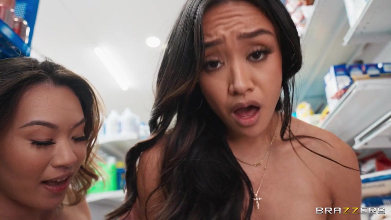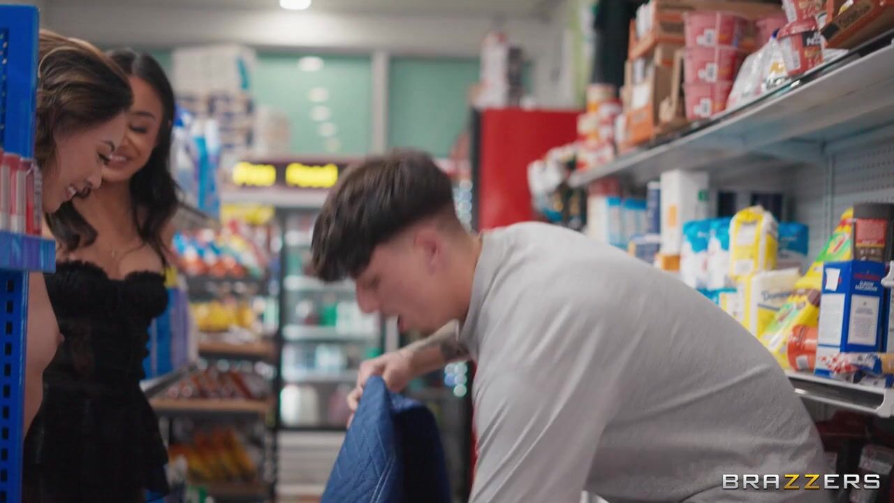 Description: Kimmy Kim, Jade Kimiko & Daisy Pheonix are out of the prowl, hot and horny to fuck when they burst into a bodega making out. Ethan Seeks, the bodega employee, checks out the ruckus only to get a front row show to a triple pussy threesome before he’s yanked right into. Ethan sneaky fucks the ladies while managing customers as the ladies use his dick for their pleasure in a messy public fuckfest.