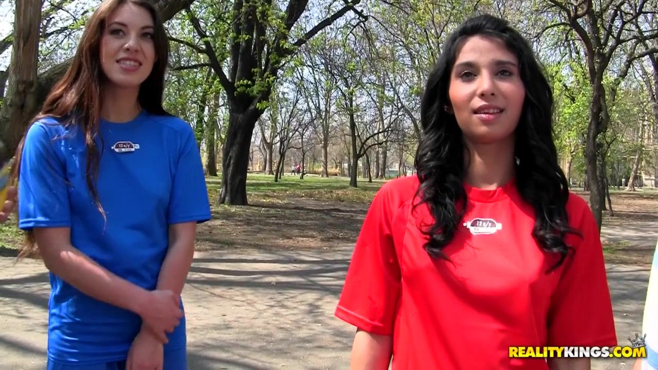 Ria, a dark haired, dark skinned Hungarian and Tifany a light skined, French, brunette, are kicking a ball back and forth at the the local park. Both girls are looking exceptionally sexy in the soccer outfits; the typical, short, soccer shorts, thin, soccer jerseys, with no bras underneath, and knee high socks seal the deal to accent the beauty of these two girls. Soon enough they draw the attention of Sabby and Tony. The two guys join in and play along. As things start to get hot and the guys and girls become better acquainted the girls show off their sexy, athletic bodies right in the middle of the park. The decision to take this to a more private local comes quickly. They get back to the apartment and the girls take a shower together and Sabby joins them. They get nice and wet while getting Sabby hard. All three soap each other up and help each other rinse, providing a nice little intermission. The party moves to the bedroom next. Here Tony is waiting, having taken a shower in another bathroom, since neither shower is that large. The girls lay down on their stomachs and let the guys rub lotion on their legs and amazing asses. This quickly turns into ass and pussy licking, as well as cock sucking. But the party doesn't stop here soon the girls are gracefully twisting into various positions and switching partners effortlessly. We are given quite the show by these young, horny, athletic euro beauties. In a blowjob finally Tifany swallows a huge load from Tony while Sabby covers Rias entire face in a cum mask.